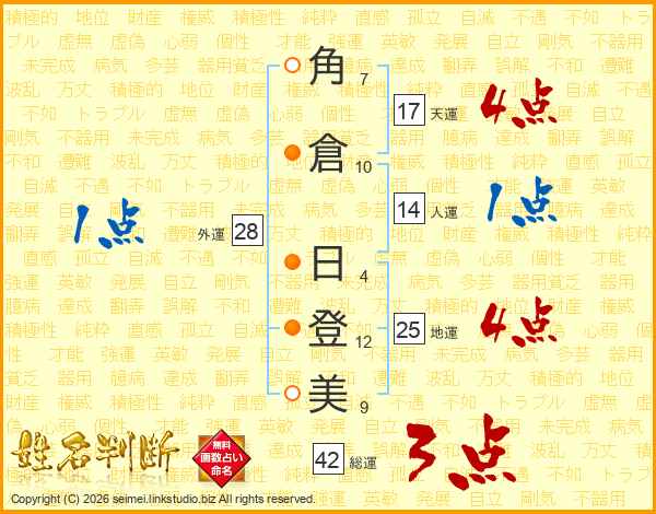 角倉日登美さんの天運は17画の4点!