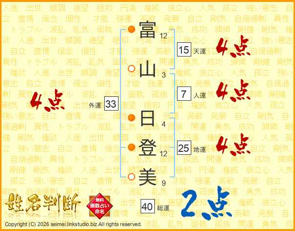 富(12画)山(3画) 日(4画)登(12画)美(9画)