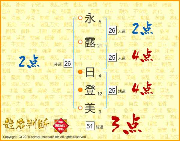 永(5画)露(21画) 日(4画)登(12画)美(9画)
