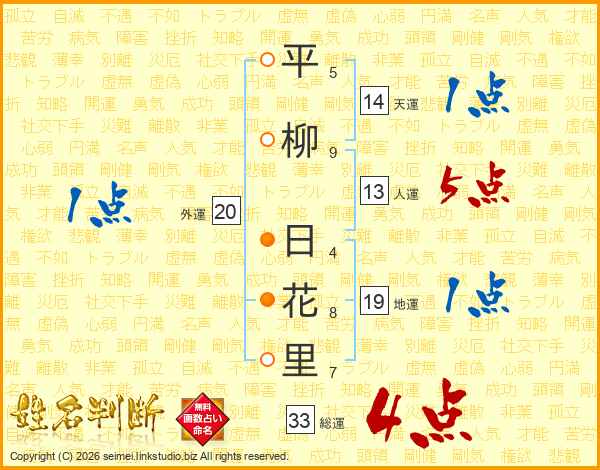 平柳日花里さんの総運は33画の4点!