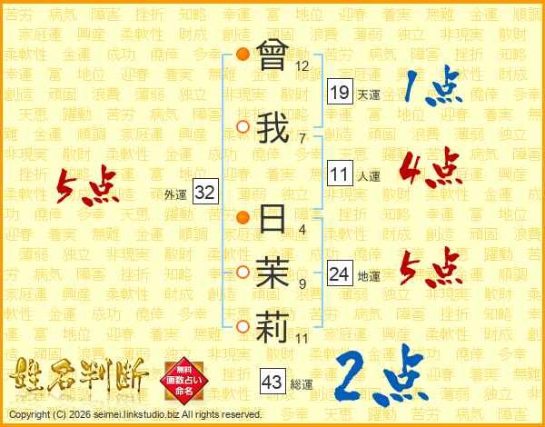曾我日茉莉さんの外運は32画の5点!