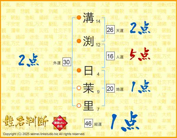 溝(14画)渕(12画) 日(4画)茉(9画)里(7画)
