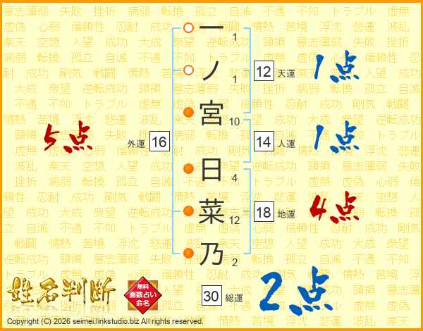一ノ宮日菜乃さんの外運は16画の5点!