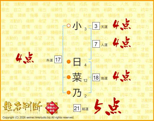 小日菜乃さんの外運は17画の4点!