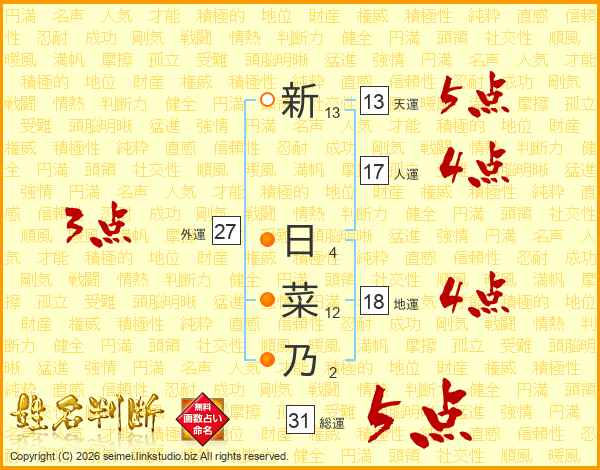 新日菜乃さんの総運は31画の5点!