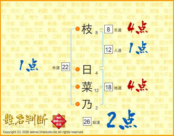 枝日菜乃さんの総運は26画の2点!