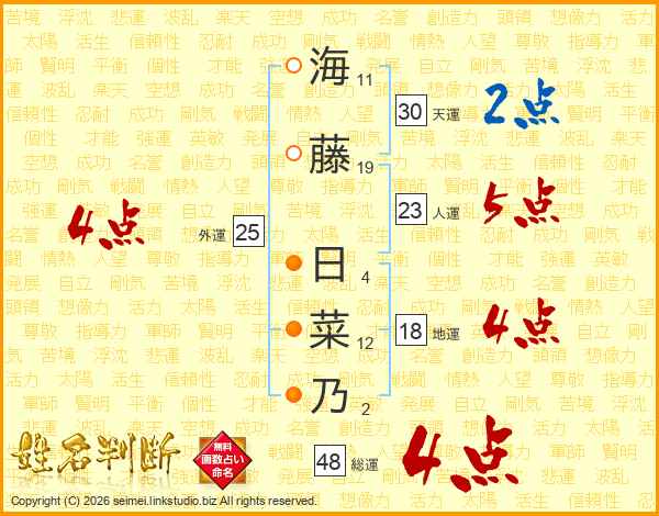 海藤日菜乃さんの総運は48画の4点!