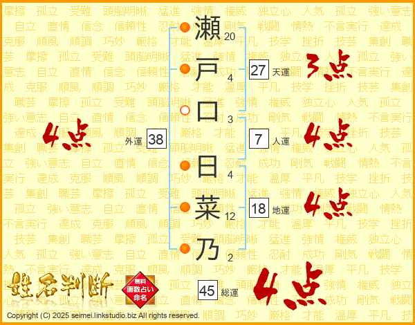 瀬戸口日菜乃さんの外運は38画の4点!