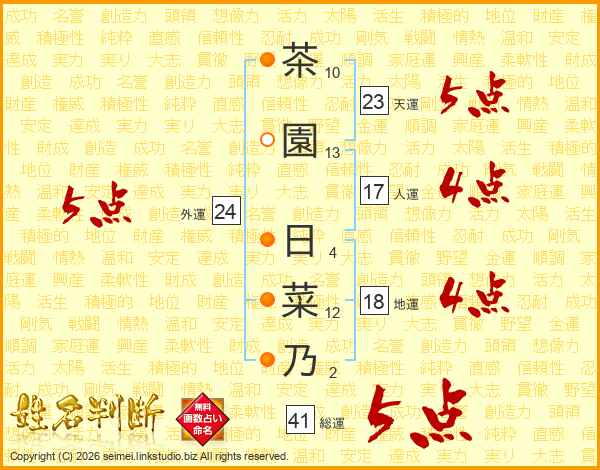 茶園日菜乃さんの総運は41画の5点!
