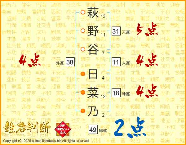 萩野谷日菜乃さんの総運は49画の2点!