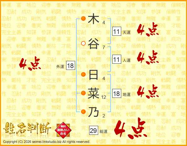 木谷日菜乃さんの総運は29画の4点!