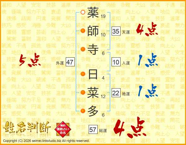 薬師寺日菜多さんの外運は47画の5点!