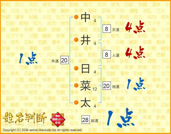 中井日菜太さんの天運は8画の4点!