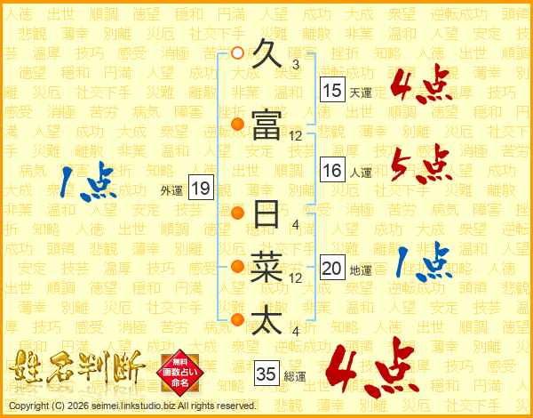 久富日菜太さんの総運は35画の4点!