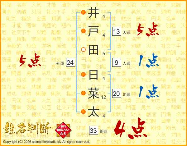 井戸田日菜太さんの天運は13画の5点!