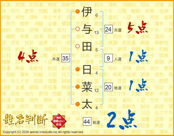 伊与田日菜太さんの天運は24画の5点!