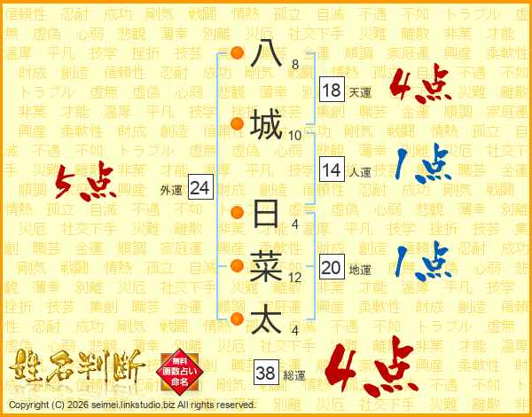 八(8画)城(10画) 日(4画)菜(12画)太(4画)