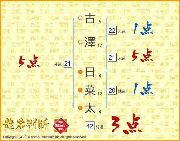 古澤日菜太さんの人運は21画の5点!
