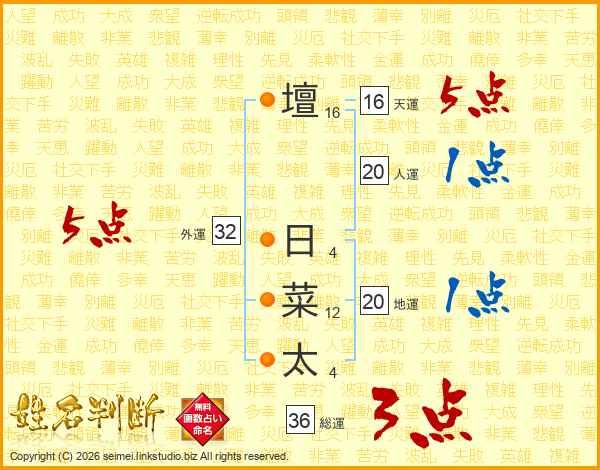 壇日菜太さんの天運は16画の5点!