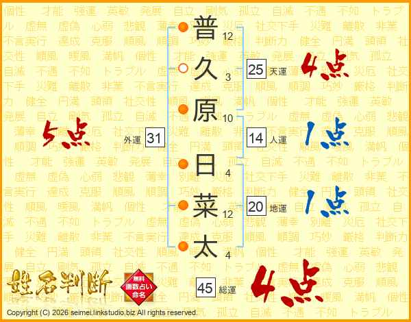普久原日菜太さんの総運は45画の4点!