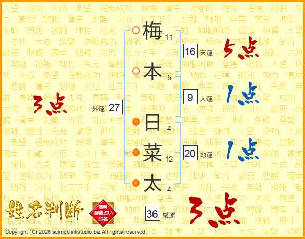 梅本日菜太さんの総運は36画の3点!