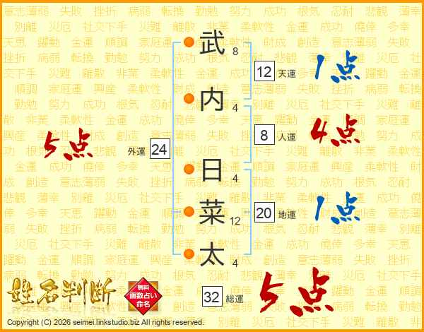 武内日菜太さんの総運は32画の5点!