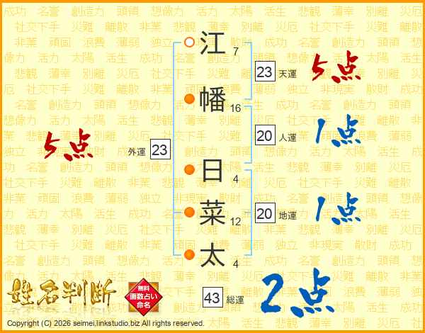 江幡日菜太さんの天運は23画の5点!