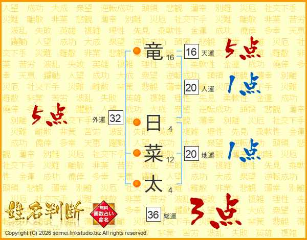 竜日菜太さんの外運は32画の5点!