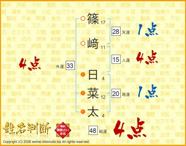 篠﨑日菜太さんの総運は48画の4点!