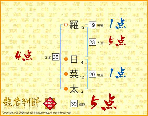 羅日菜太さんの総運は39画の5点!