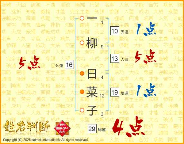 一柳日菜子さんの総運は29画の4点!