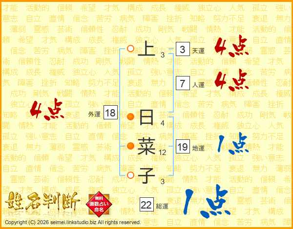上日菜子さんの外運は18画の4点!
