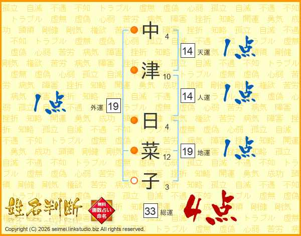 中津日菜子さんの総運は33画の4点!