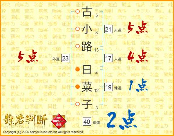 古小路日菜子さんの外運は23画の5点!