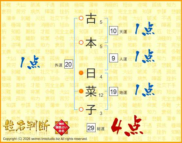 古本日菜子さんの総運は29画の4点!