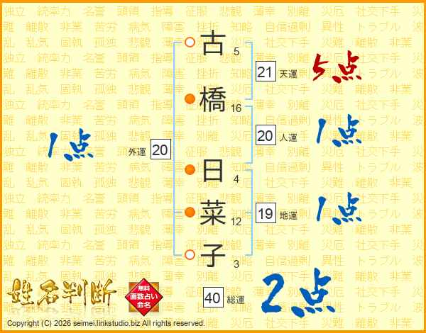 古橋日菜子さんの天運は21画の5点!