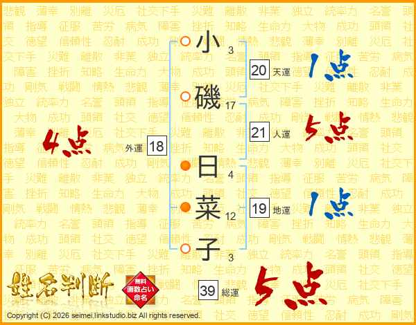 小磯日菜子さんの総運は39画の5点!