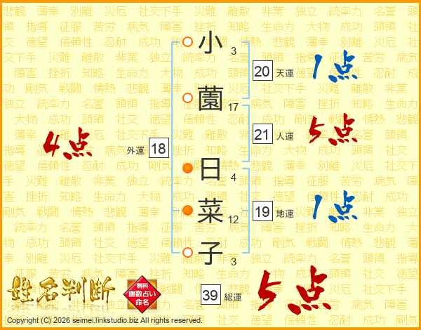 小薗日菜子さんの総運は39画の5点!