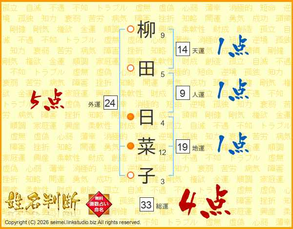 柳田日菜子さんの総運は33画の4点!