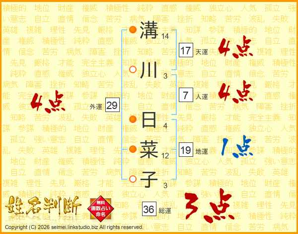 溝川日菜子さんの天運は17画の4点!