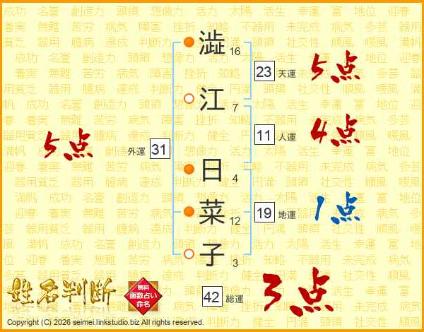 澁(16画)江(7画) 日(4画)菜(12画)子(3画)