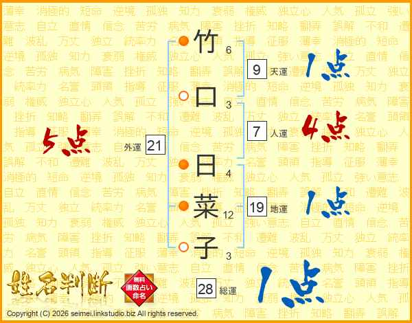 竹口日菜子さんの外運は21画の5点!