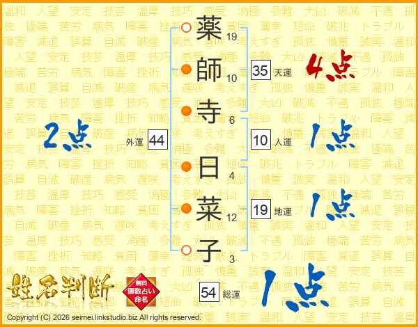 薬師寺日菜子さんの外運は44画の2点!
