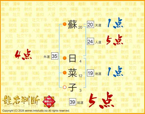 蘇日菜子さんの総運は39画の5点!