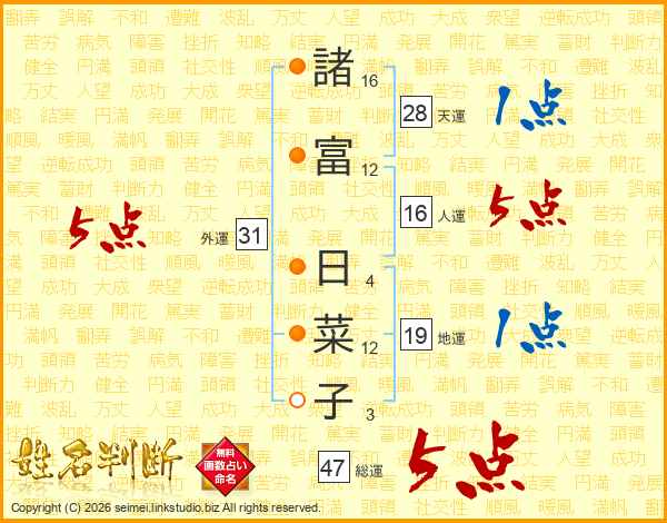 諸富日菜子さんの外運は31画の5点!