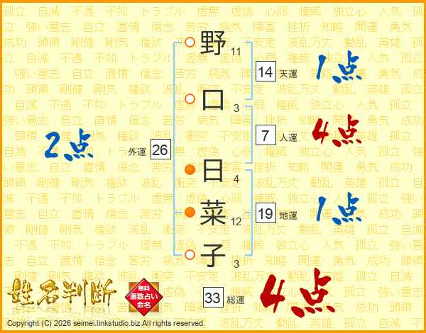 野口日菜子さんの総運は33画の4点!