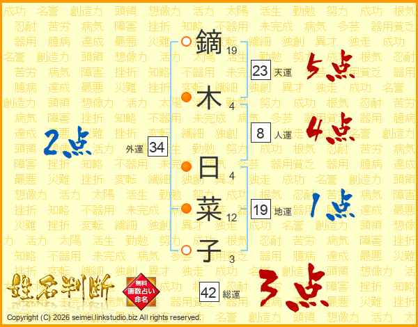 鏑木日菜子さんの天運は23画の5点!