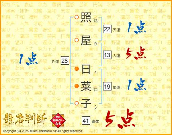 照屋日菜子さんの総運は41画の5点!