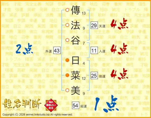 傳法谷日菜美さんの天運は29画の4点!