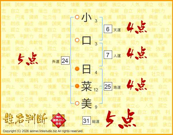 小口日菜美さんの総運は31画の5点!